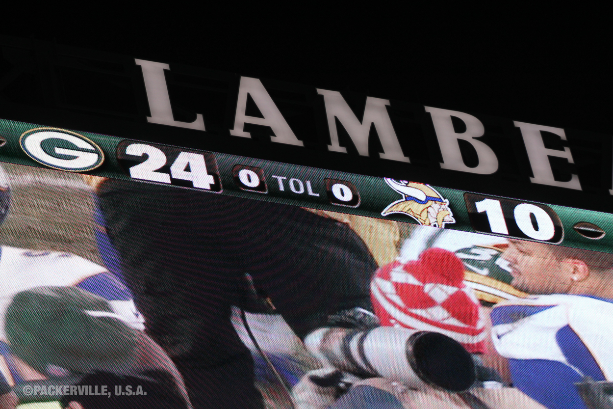 Nearing the end of the game, the Packers’ defense continues to shut down the Vikings’ offense (except of course, for that one cheap, blown-coverage last minute TD pass).