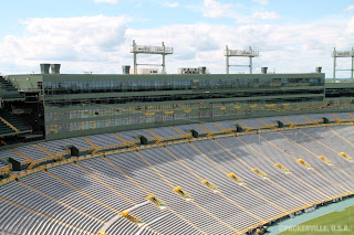 Above and below, a couple of final Lambeau views from this lofty perch.